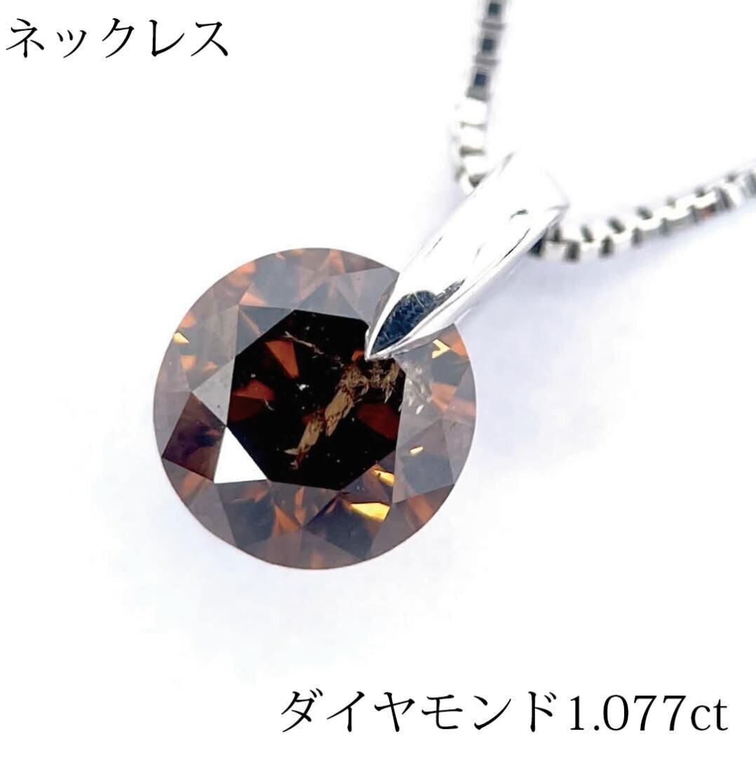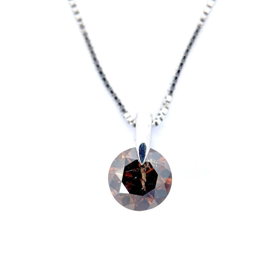 ブラウンダイヤモンド 1.077ct ペンダントネックレス K18WG Pt850 一粒 ジュエリー プラチナ ホワイトゴールド
